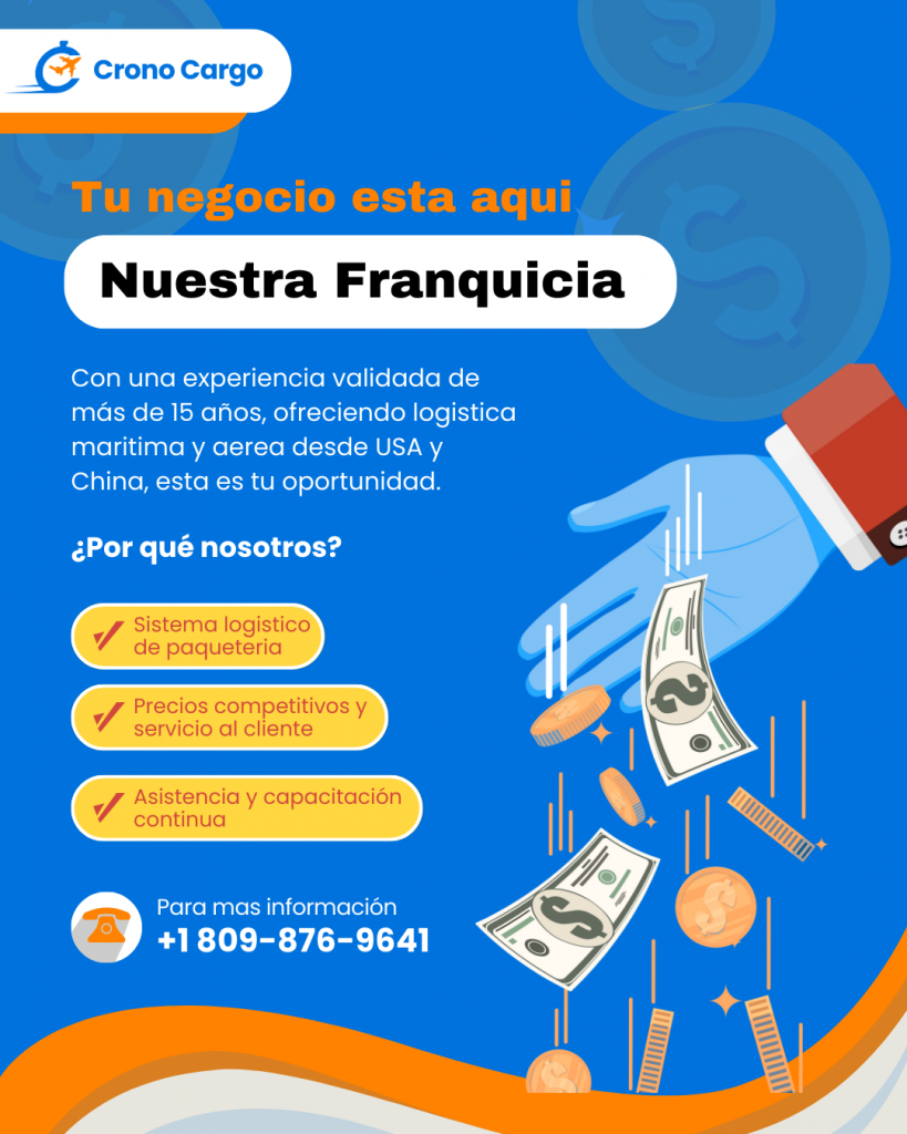 ¿Buscas una oportunidad de negocio sólida y con futuro en el creciente sector de la logística internacional de paquetes? Crono Cargo te invita a explorar el emocionante camino de convertirte en nuestro socio franquiciado. Con nuestra trayectoria y un modelo de negocio probado, ofrecemos una propuesta de valor única para emprendedores como tú.